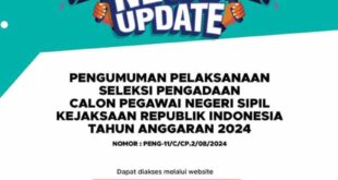 Read More »Pengumuman Pelaksanaan Seleksi Calon Pegawai Negeri Sipil Kejaksaan RI Tahun 2024