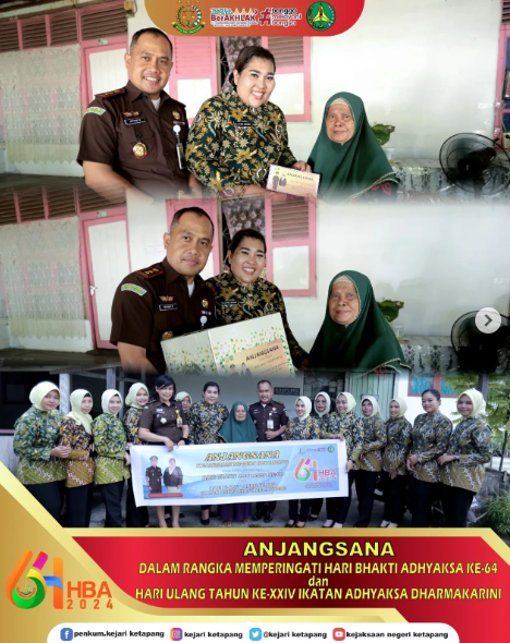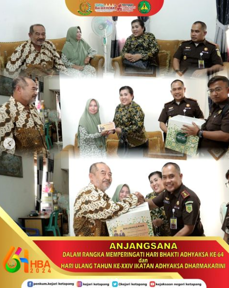 Kepala Kejaksaan Negeri Ketapang Bapak Anthoni Nainggolan, S.H., M.H., Ketua Ikatan Adhyaksa Dharmakarini (IAD) Daerah Ketapang Ny. Letare Anthoni Nainggolan beserta Para Kasi dan Kasubag, Pengurus dan jajaran Anggota Ikatan Adhyaksa Dharmakarini (IAD) Daerah Ketapang serta Pegawai Kejaksaan Negeri Ketapang melaksanakan ANJANGSANA dalam rangka menyambut Hari Bhakti Adhyaksa ke – 64 tahun dan HUT XXIV Ikatan Adhyaksa Dharmakarini (IAD) Tahun 2024.