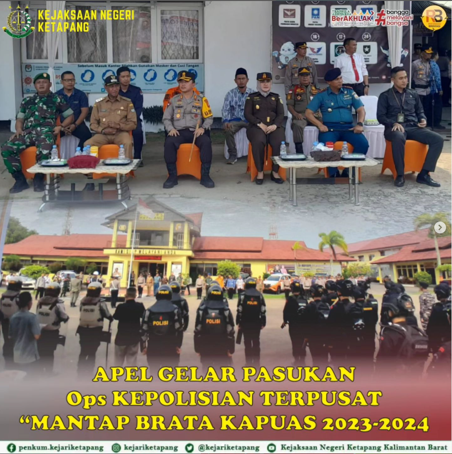 Bertempat di Polres Ketapang Kepala Kejaksaan Negeri Ketapang RA Dhini Ardhany, SH., MH menghadiri Apel Gelar Pasukan dalam rangka Operasi terpisah Mantap Brata Kapuas 2023 – 2024 dalam rangka Pengamanan Pemilu tahun 2024 di Wilayah Hukum Polres Ketapang
