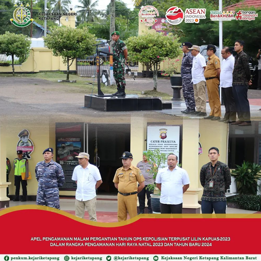 Bertempat di Halaman Polres Ketapang, Jalan Brigjend Katamso, Kelurahan Sukaharja, Kecamatan Delta Pawan, Kabupaten Ketapang. Kepala Seksi Tindak Pidana Umum Novan Arianto, S.H. Menghadiri Apel Pengamanan Malam Pergantian Tahun Ops Kepolisian Terpusat Lilin Kapuas-2023 dalam rangka Pengamanan Hari Raya Natal 2023 dan Tahun Baru 2024