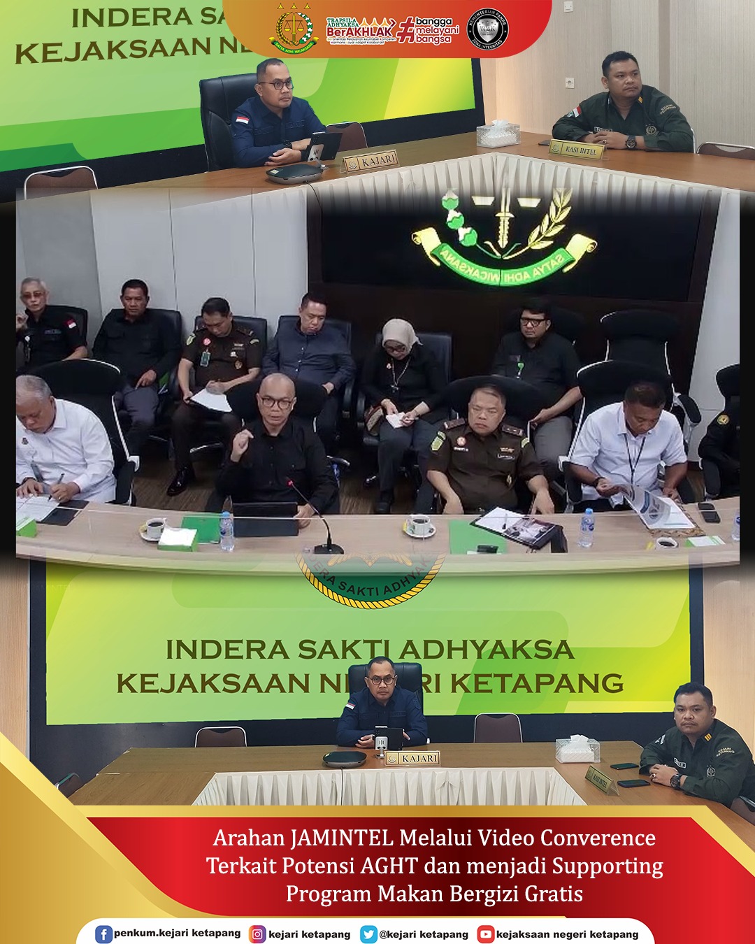 Bertempat di Aula Kantor Kejaksaan Negeri Ketapang, Kepala Kejaksaan Negeri Ketapang Bapak Anthony Nainggolan, S.H., M.H. di dampingi Kepala Seksi Intelijen Panter Rivay Sinambela, S.H. mengikuti arahan dari JAMINTEL terkait potensi AGHT dan Supporting Program Makan Bergizi Gratis melalui Video Converence.