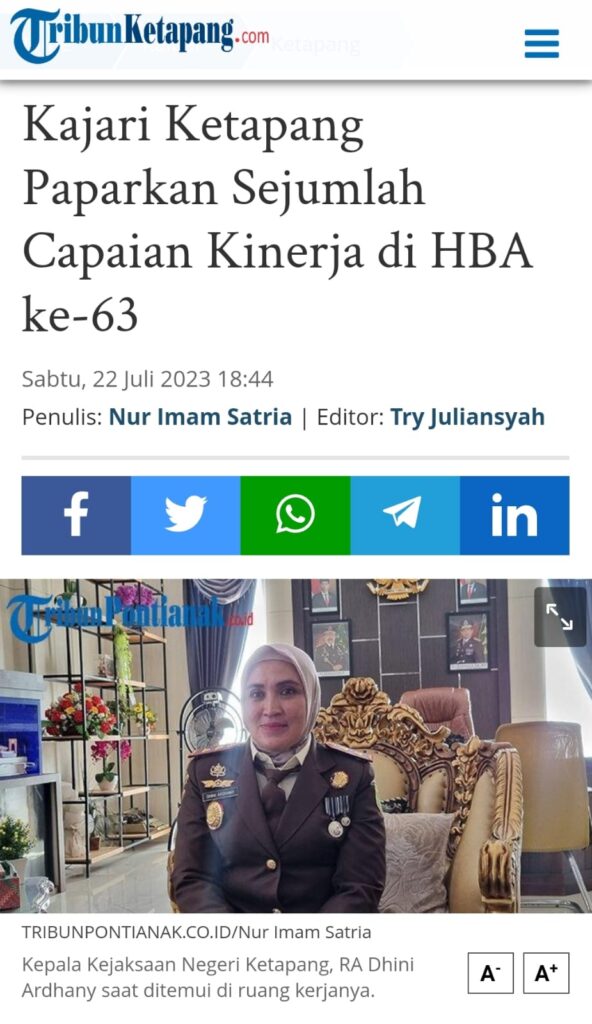 Berita lebih lanjut dapat dilihat pada link dibawah ini : https://pontianak.tribunnews.com/2023/07/22/kajari-ketapang-paparkan-sejumlah-capaian-kinerja-di-hba-ke-63