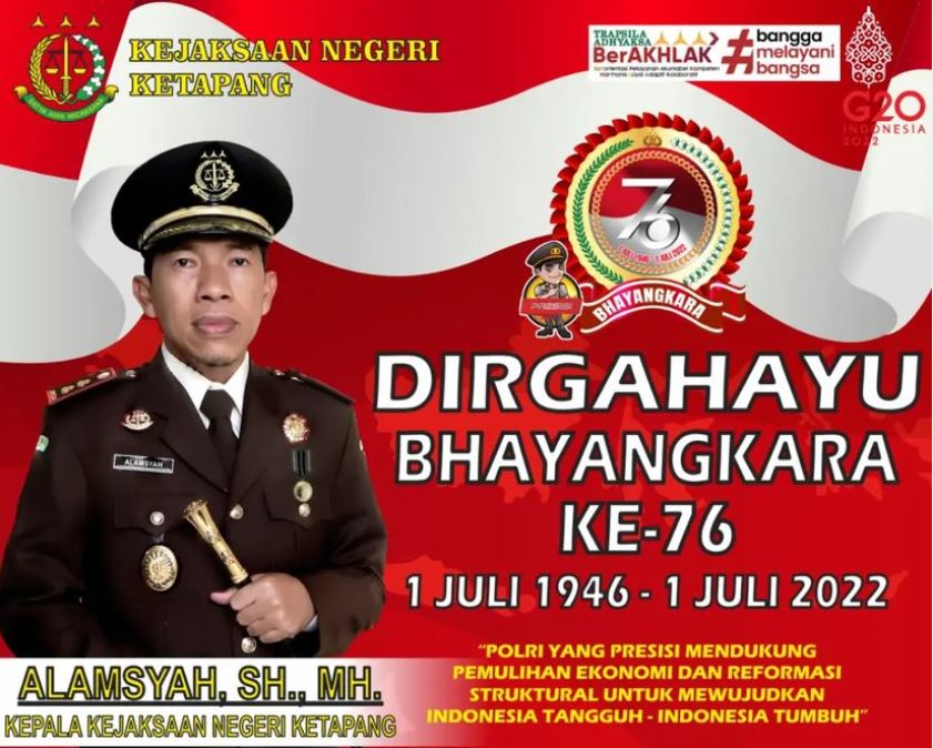 Beserta Jajaran dan Pegawai Kejaksaan Negeri Ketapang mengucapkan “DIRGAHAYU BHAYANGKARA Ke-76 1 Juli 1946 – 1 Juli 2022”