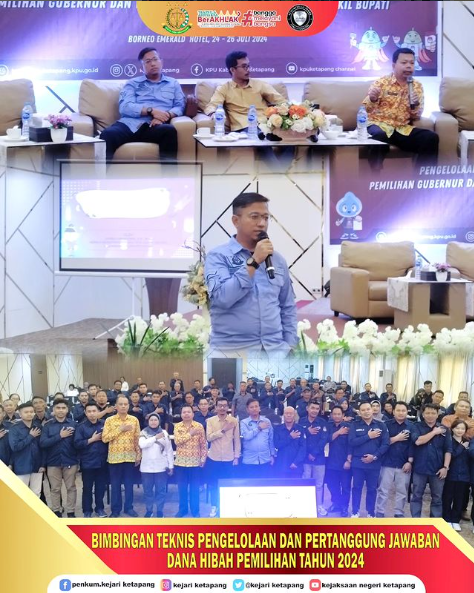 Kepala Kejaksaan Negeri Ketapang diwakili oleh Kepala Seksi Perdata dan Tata Usaha Negara Dhimas Mahendra W, S.H., M.H. menghadiri sebagai Narasumber dalam Kegiatan Bimbingan Teknis Pengelolaan dan Pertanggung Jawaban Anggaran Pemilihan Gubernur dan Wakil Gubernur serta Bupati dan Wakil Bupati Tahun 2024.