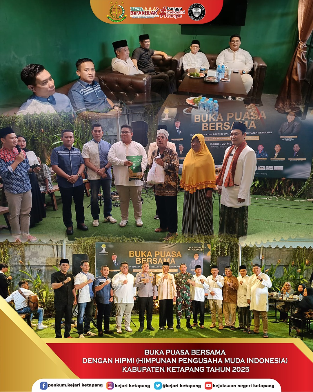 Bertempat di cafe Lokanoa Ketapang. Kepala Kejaksaan Negeri Ketapang diwakili Kepala Subbagian Pembinaan Andhika Fery Kurniawan, S.H. Kegiatan Buka Puasa Bersama dengan tema Harmoni dalam kebersamaan, kuat dalam persatuan oleh HIPMI (Himpunan Pengusaha Muda Indonesia) Kabupaten Ketapang.