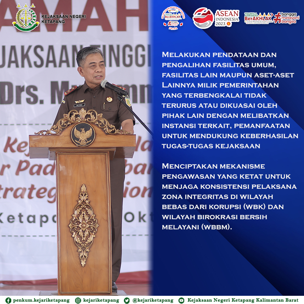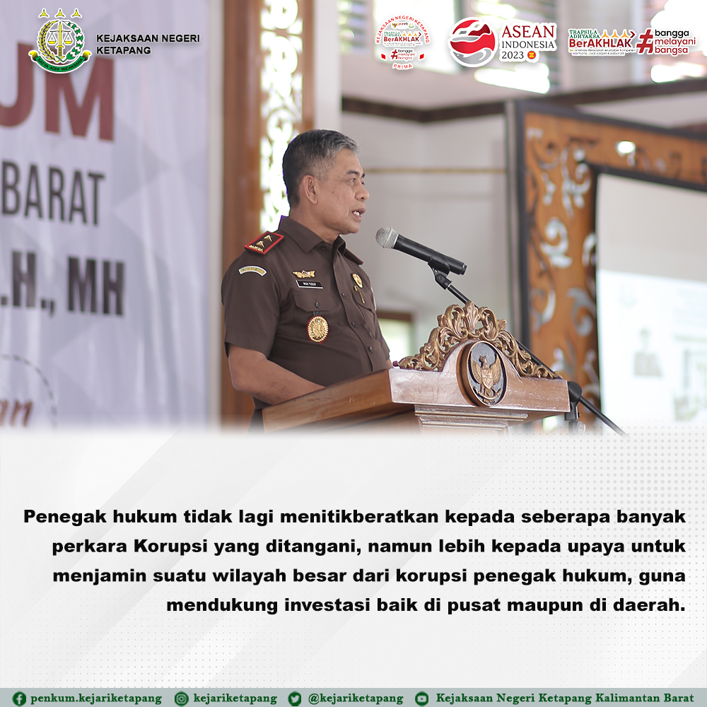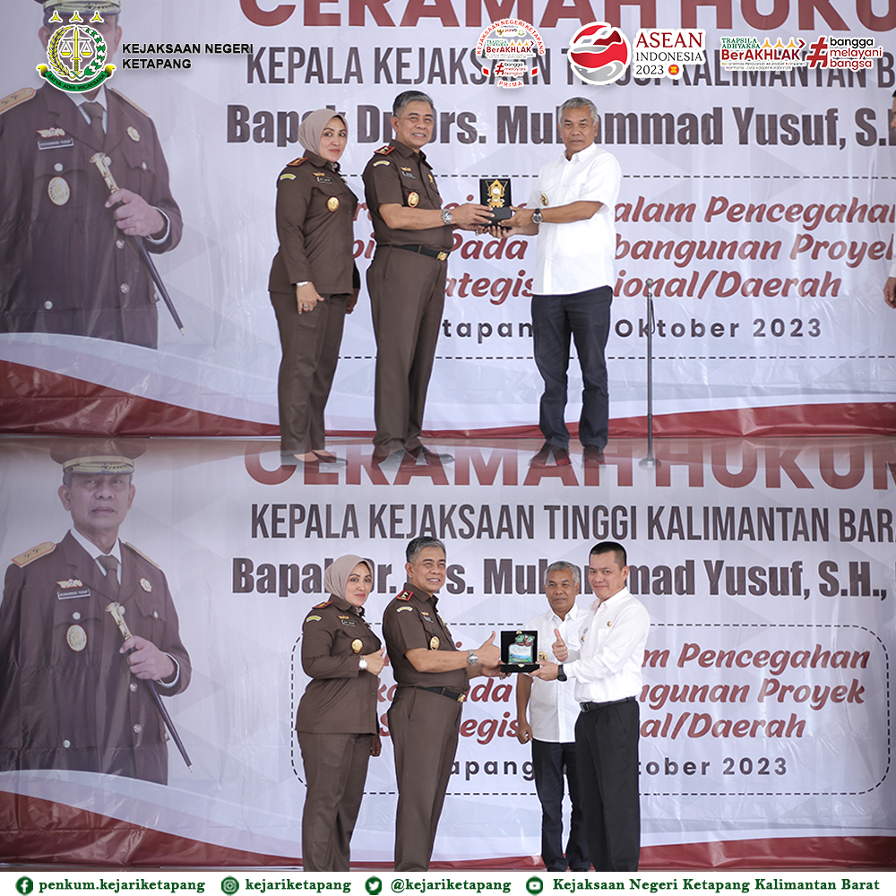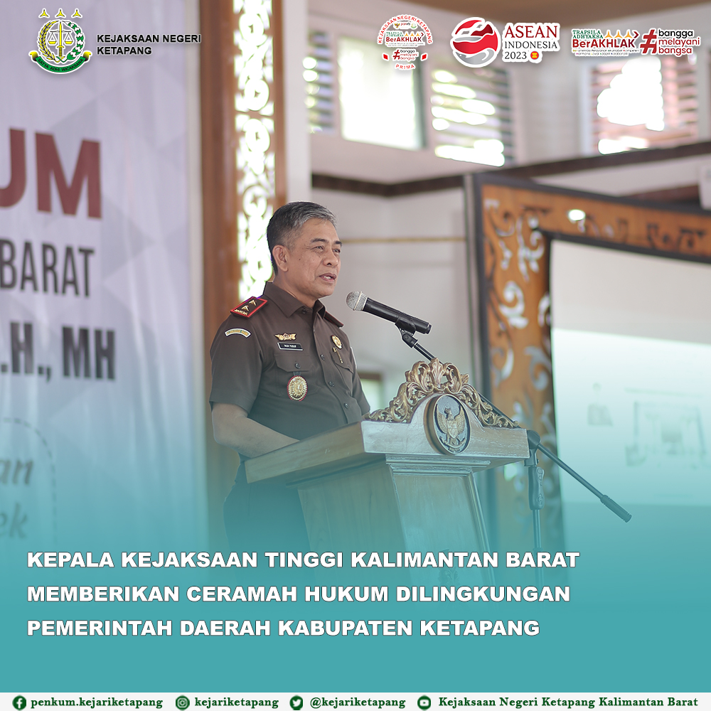 Bertempat di Gedung Pancasila, Jalan Letjend S. Parman, Kelurahan Mulia Baru, Kecamatan Delta Pawan, Kabupaten Ketapang, Kepala Kejaksaan Tinggi Kalimantan Barat Bapak Dr. Drs. Muhammad Yusuf, SH, MH, memberikan Ceramah Hukum kepada ASN Pemerintah Daerah Kabupaten Ketapang dan Kabupaten Kayong Utara, dengan tema “Peran Kejaksaan Dalam Pencegahan Tindak Pidana Korupsi pada Pembangunan Proyek Strategis Nasional / Daerah”.