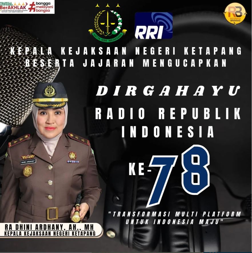 Kepala Kejaksaan Negeri Ketapang Ibu RA. Dhini Ardhany, S.H., M.H., beserta Jajaran Mengucapkan Dirgahayu Radio Republik Indonesia ke 78 Tahun.