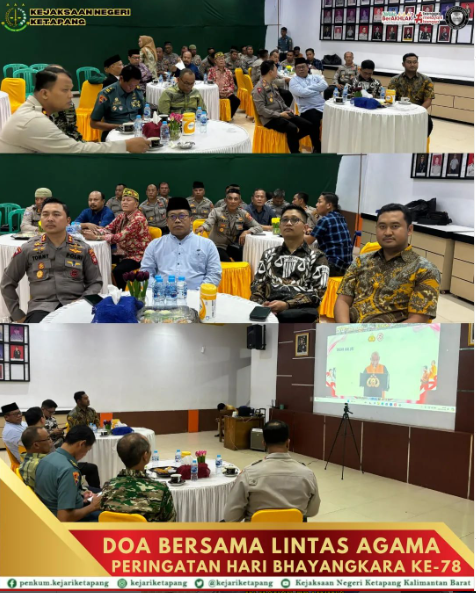 [Jum’at, 28 Juni 2024] Bertempat di Aula Polres Ketapang, Kepala Kejaksaan Negeri Ketapang diwakili oleh Kepala Sub Seksi Prapenuntutan, Rilex Tri Angga, S.H, menghadiri Pelaksanaan Doa Bersama Lintas Agama dalam Rangka Peringatan ke-78 Hari Bhayangkara.
