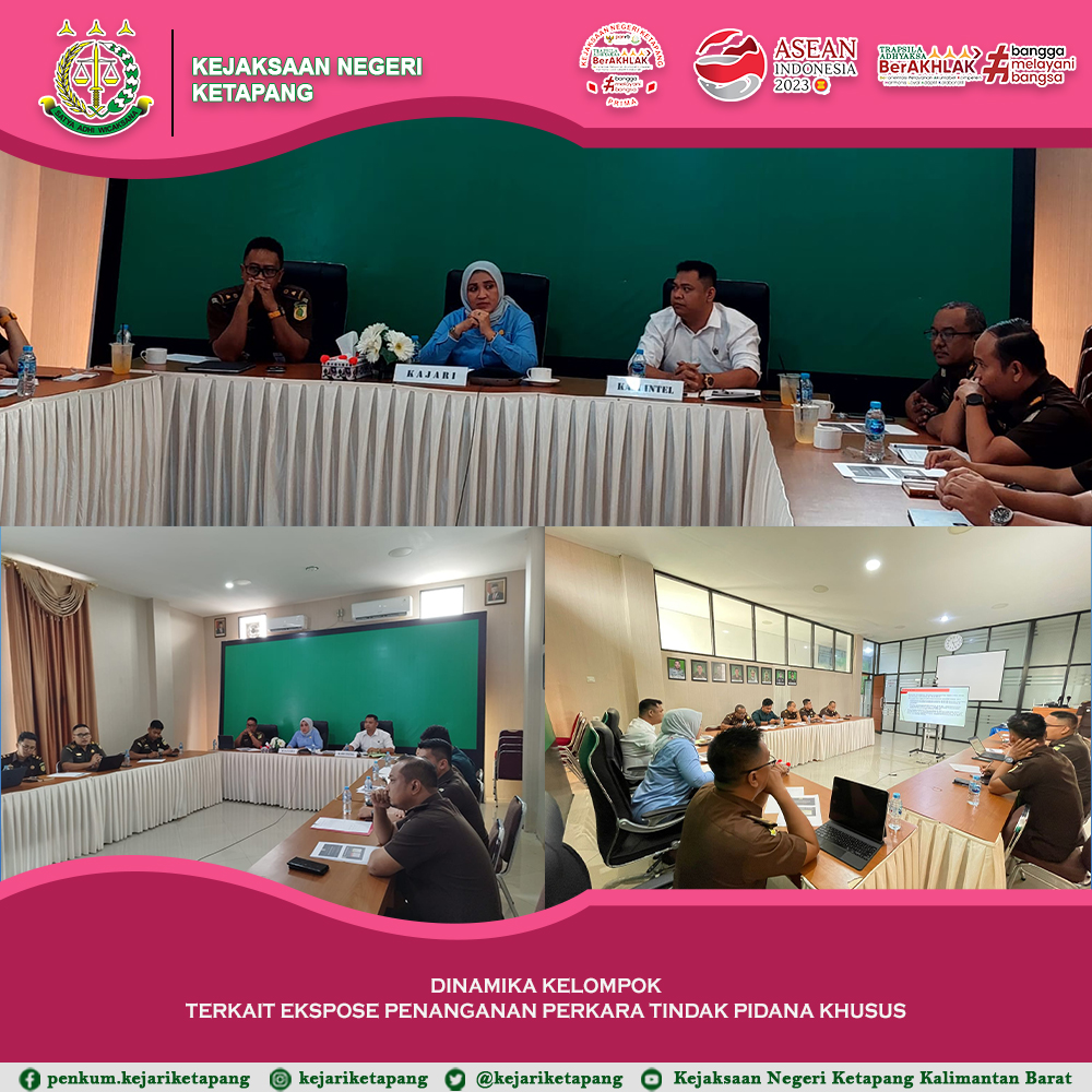 Bertempat di Kantor Kejaksaan Negeri Ketapang Jalan MT. Haryono No.84, Kelurahan Kantor, Kecamatan Delta Pawan, Kabupaten Ketapang telah dilaksanakan Dinamika Kelompok oleh para Jaksa, dalam hal ini terkait dengan Ekpose Penanganan Perkara Tindak Pidana Khusus.