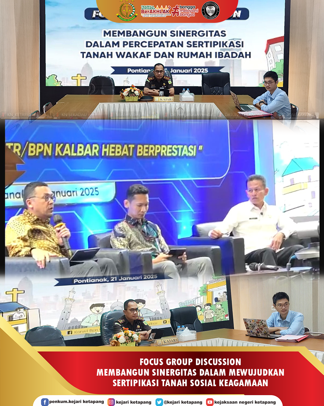 Bertempat di Aula Kejaksaan Negeri Kab. Ketapang, Kepala Kejaksaan Negeri Ketapang Bapak Anthony Nainggolan, S.H., M.H dan didampingi oleh Jaksa Fungsional Muhammad Nazlan Alfiansyah, S.H mengikuti Focus Group Discussion (FGD) Membangun Sinergitas dalam Mewujudkan Sertifikasi Tanah Sosial Keagamaan melalui Video Conference.