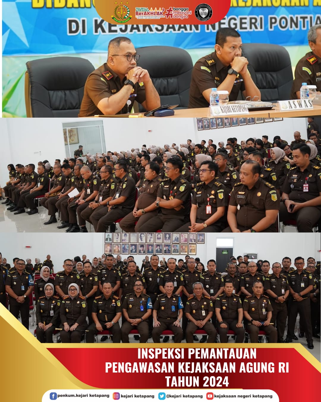 Kepala Kejaksaan Negeri Ketapang Bapak Anthony Nainggolan, S.H., M.H., Para Kepala Seksi beserta perwakilan staf pada masing – masing Bidang di Kejaksaan Negeri Ketapang mengikuti kegiatan Inspeksi Pemantauan oleh Inspektur I Jaksa Agung Muda Bidang Pengawasan Bapak Haruna, S.H., M.H. beserta Rombongan.