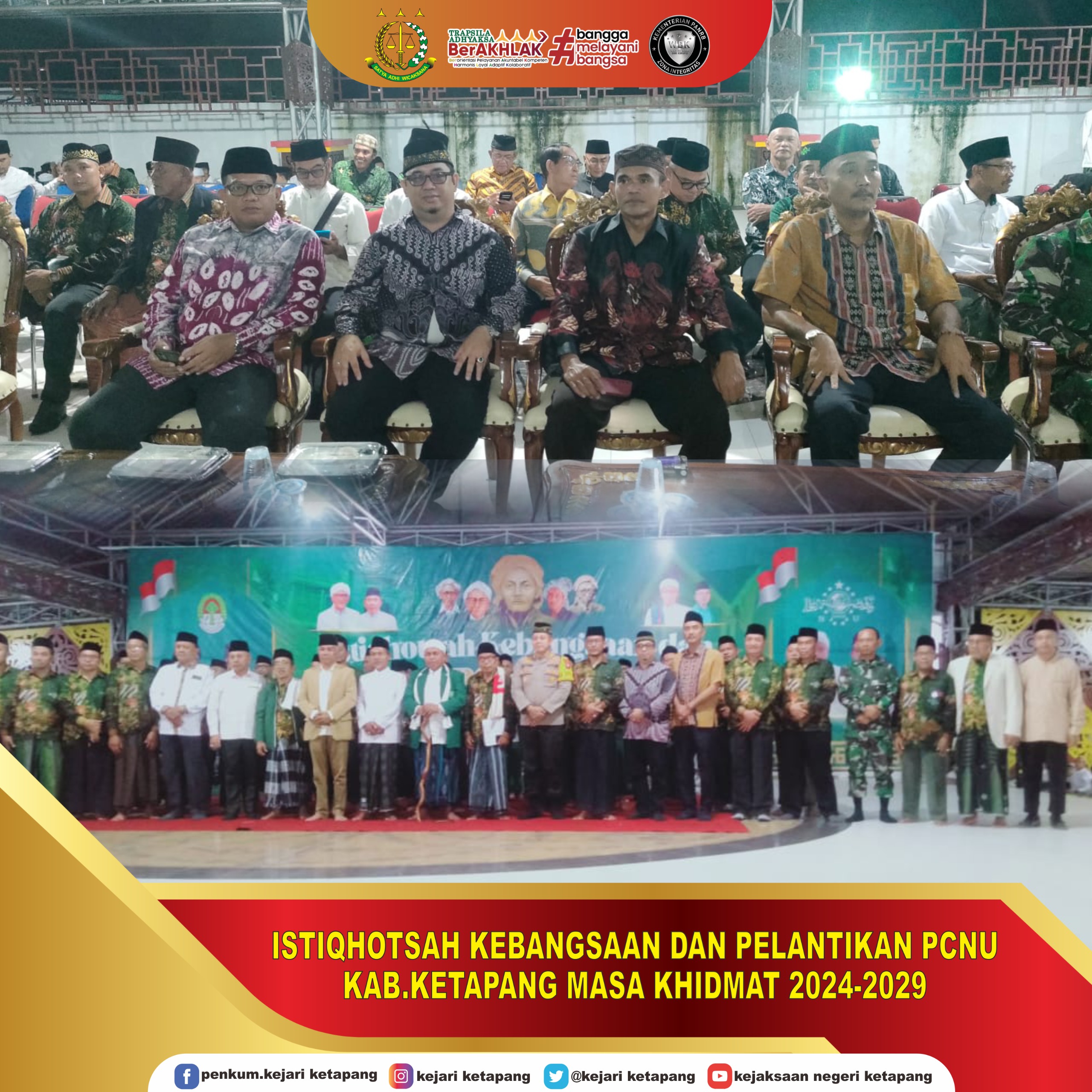 Bertempat di Balai Sungai Kedang Ketapang, Kepala Kejaksaan Negeri Ketapang diwakili oleh Kaur TU, Kepegawaian, Keuangan dan PNBP, Bapak Efga Rinosya, A.Md Menghadiri acara Istiqhotsah Kebangsaan dan Pelantikan PCNU Kab.Ketapang Masa Khidmat 2024-2029.