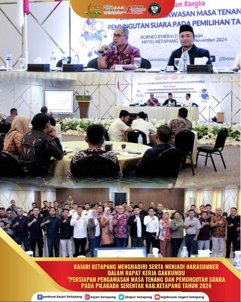 Kepala Kejaksaan Negeri Ketapang Bapak Anthony Nainggolan, S.H., M.H. menghadiri Serta Menjadi Narasumber dalam Rapat Kerja Sentra GAKKUMDU dalam Rangka Persiapan Pengawasan Masa Tenang dan Pemungutan Suara Pada PILKADA Serentak Kabupaten Ketapang Tahun 2024.