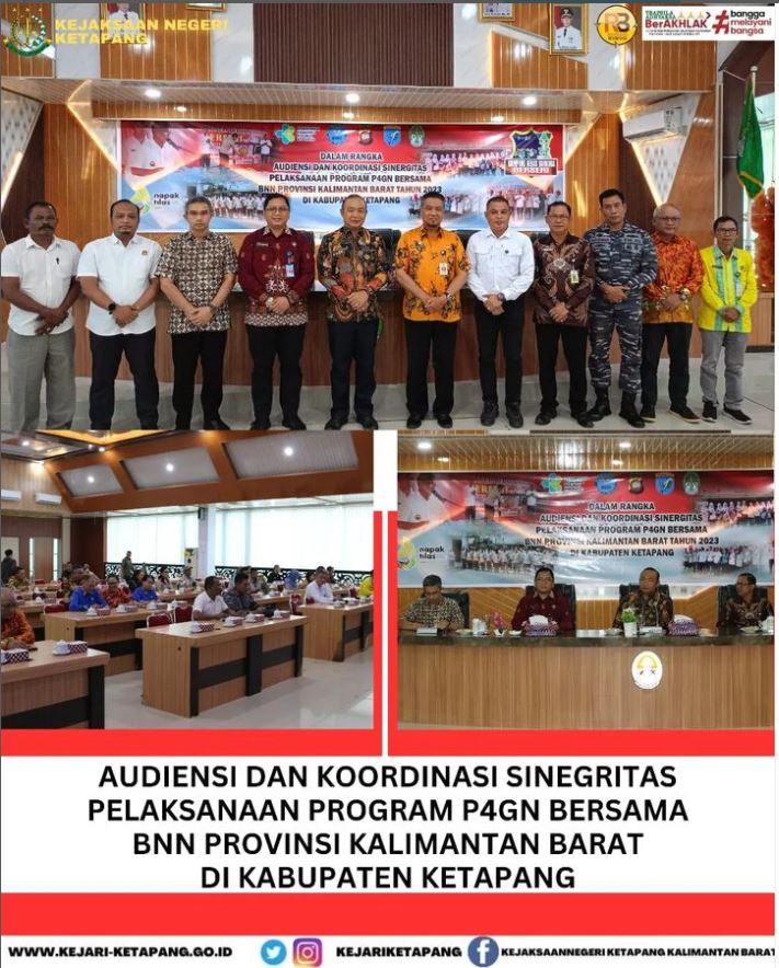 Bertempat di Ruang Rapat Lantai 3 Kantor Bupati Ketapang, Jalan Jendral Sudirman, Kelurahan Tengah, Kecamatan Delta Pawan, Kabupaten Ketapang. Kepala Seksi Tindak Pidana Umum Novan Arianto, S.H. Menghadiri Kegiatan Audensi dan Koordinasi terkait Pelaksanaan Program P4GN bersama BNN Provinsi Kalimantan Barat dengan Pemerintah Daerah Ketapang Tahun 2023.