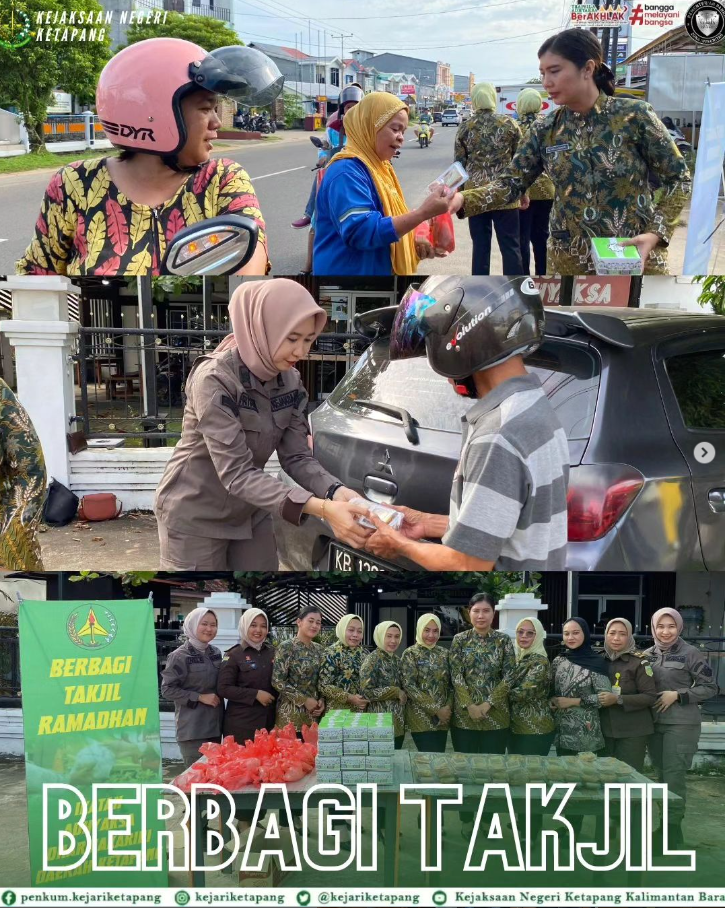 Bertempat Halaman Kantor Kejaksaan Negeri Ketapang, Pegawai Kejaksaan Negeri Ketapang beserta Ikatan Adhyaksa Dharmakarini Daerah Ketapang melaksanakan Kegiatan Berbagi Takjil Ramadhan Untuk Masyarakat Kabupaten Ketapang.