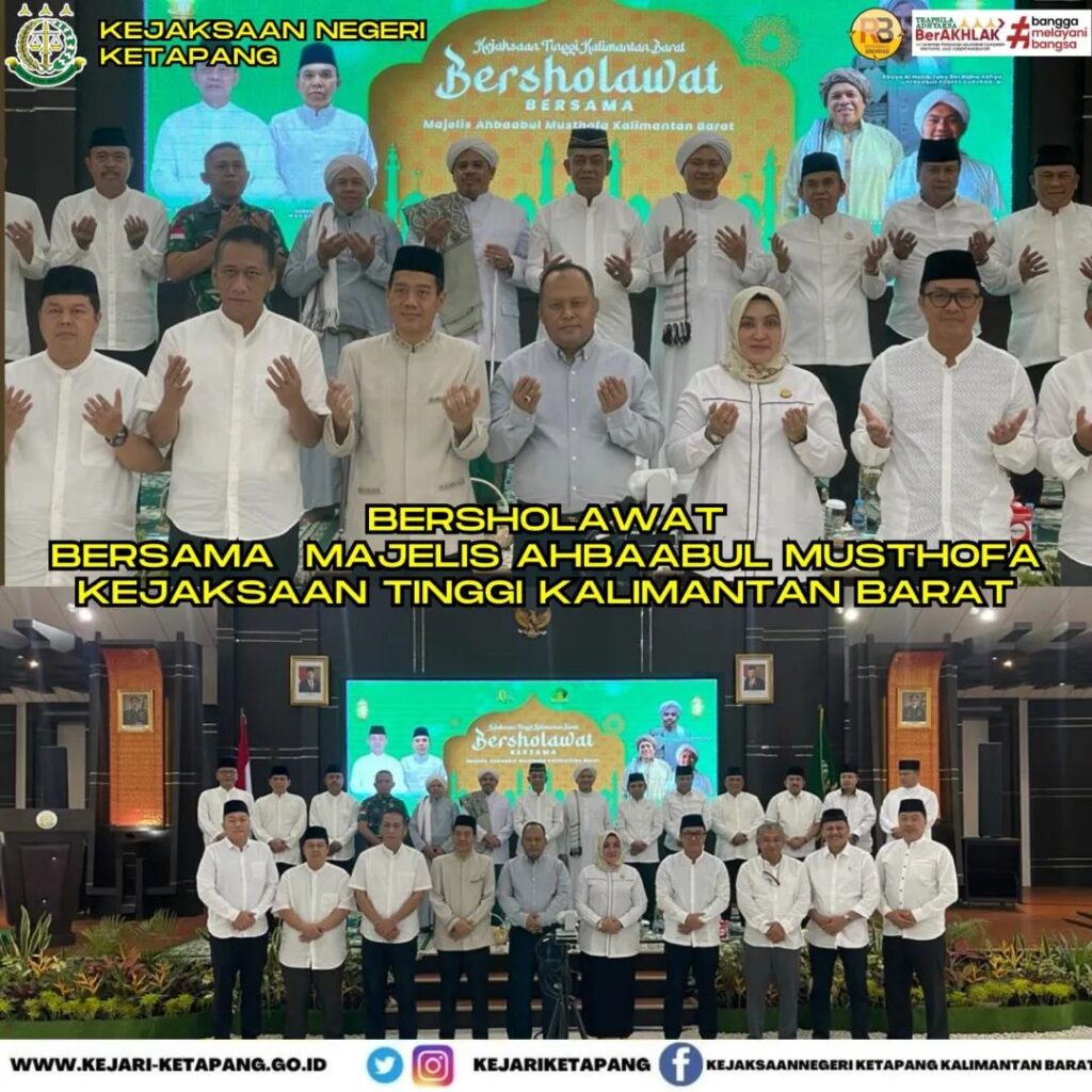 Bertempat di Aula Kejaksaan Tinggi Kalimantan Barat, Jalan Ahmad Yani, Kota Pontianak, Provinsi Kalimantan Barat. Kepala Kejaksaan Negeri Ketapang Ibu RA. Dhini Ardhany, S.H., M.H. Menghadiri Kegiatan Bersholawat Bersama Majelis Ahbaabul Mushtofa Kejaksaan Tinggi Kalimantan Barat.