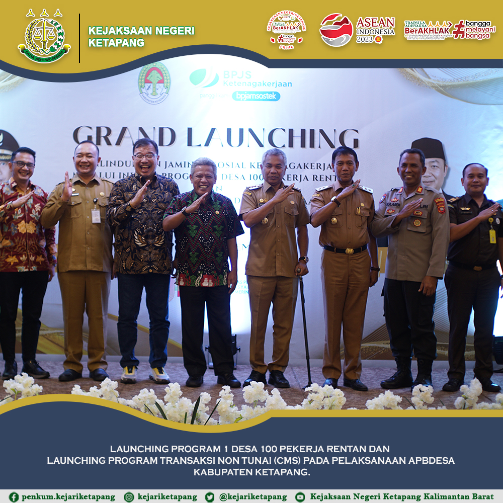Bertempat di Hotel Borneo Emerlad Ketapang, Jalan Dr. Sutomo No.68, Kelurahan Mulia Baru, Kecamatan Delta Pawan, Kabupaten Ketapang. Kepala Sub Bagian Pembinaan Doni Marianto, S.H. Menghadiri kegiatan launching Program 1 Desa 100 Pekerja Rentan dan Launching Program Transaksi Non Tunai (CMS) pada Pelaksanaan APBDesa di Kabupaten Ketapang.