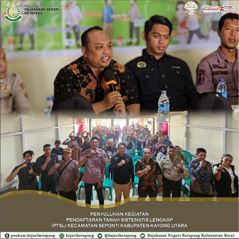 Bertempat di Aula Kantor Kecamatan Seponti Kabupaten Kayong Utara, Kepala Kejaksaan Negeri Ketapang diwakili oleh Kasi Pidum Novan Arianto, S.H menghadiri Kegiatan Penyuluhan Pendaftaran Tanah Sistematis Lengkap (PTSL).