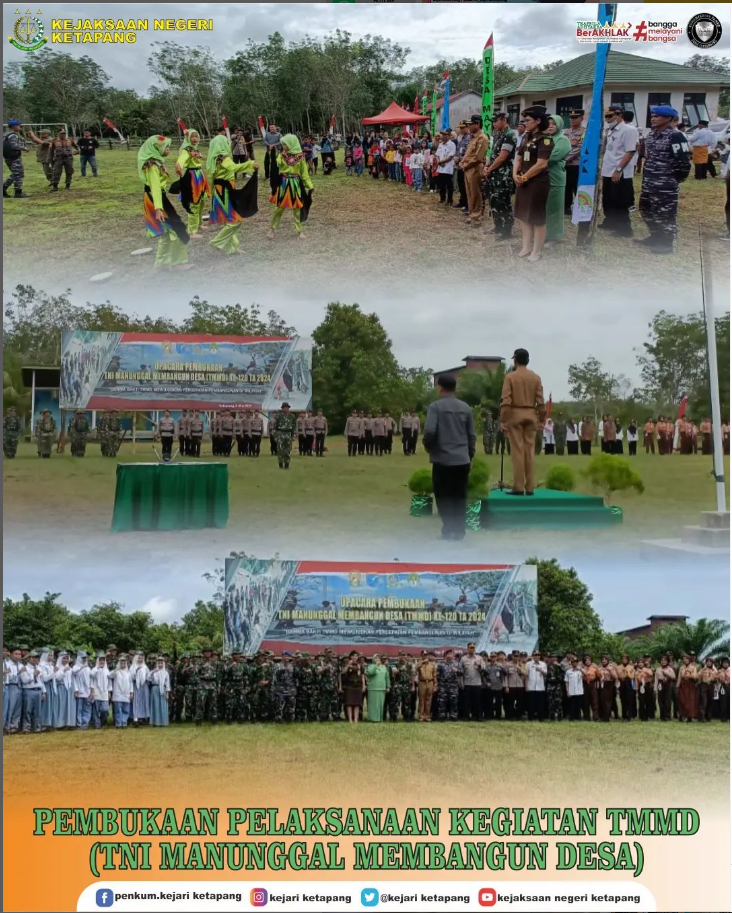Bertempat di Lapangan Bola Desa Mayak, Kecamatan Muara Pawan, Kabupaten Ketapang. Kepala Seksi Pengelolaan Barang Bukti dan Barang Rampasan, Wara Endrini, ST, SH, MH, Menghadiri upacara pembukaan pelaksanaan kegiatan TMMD (TNI Manunggal Membangun Desa) Imbangan ke-120 TA 2024 Kodim 1203 Ktp.