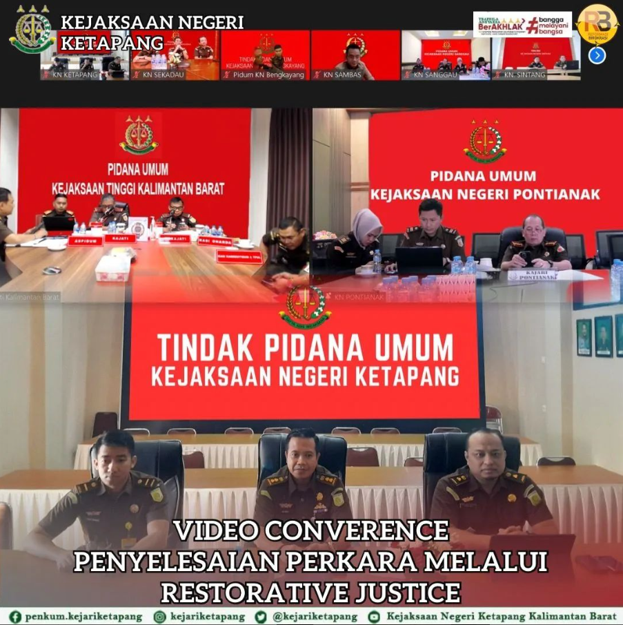 Bertempat di Aula Kantor Kejaksaan Negeri Ketapang. Plh. Kepala Kejaksaan Negeri Ketapang Dr. Deddi Diliyanto, S.H., M.H dan Kasi Tindak Pidana Umum Novan Arianto, S.H beserta Jaksa Fungsional Panji Bangun Indriyanto, S.H Menghadiri Kegiatan Vicon Expose Penerapan Restorative Justice Oleh Kejaksaan Negeri Pontianak.