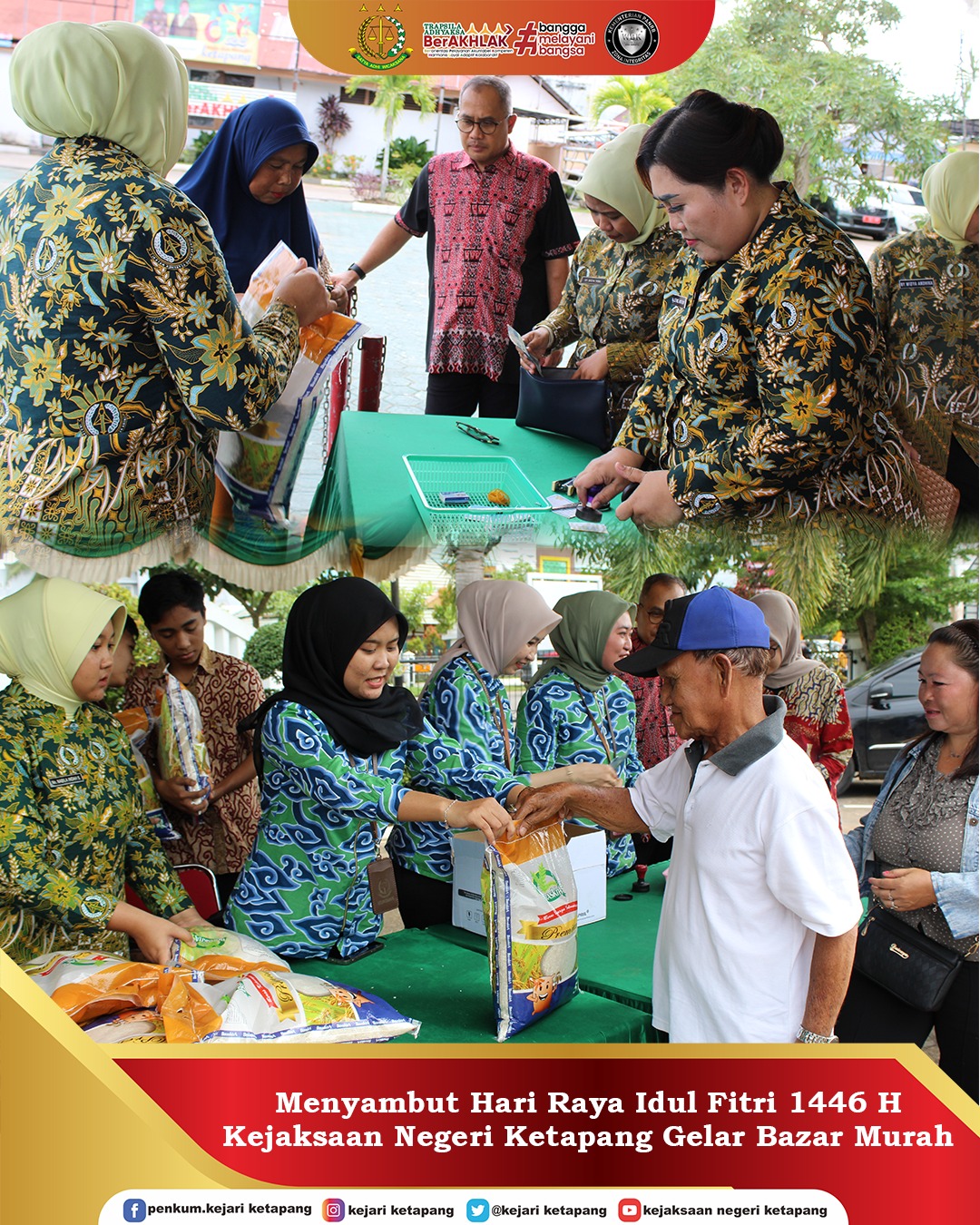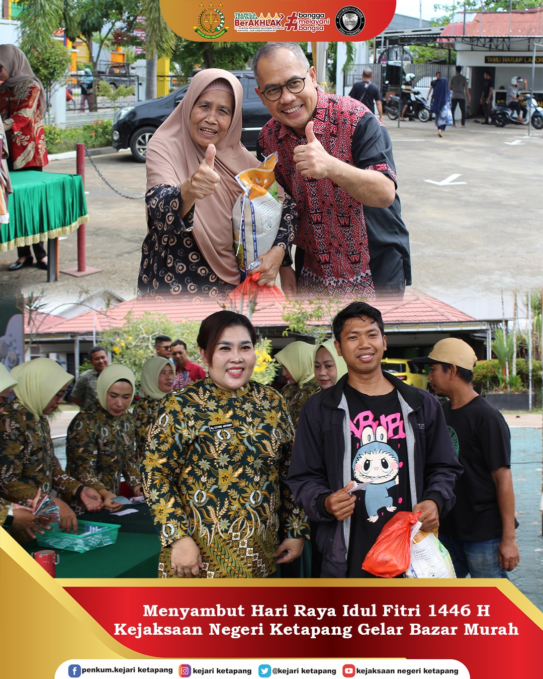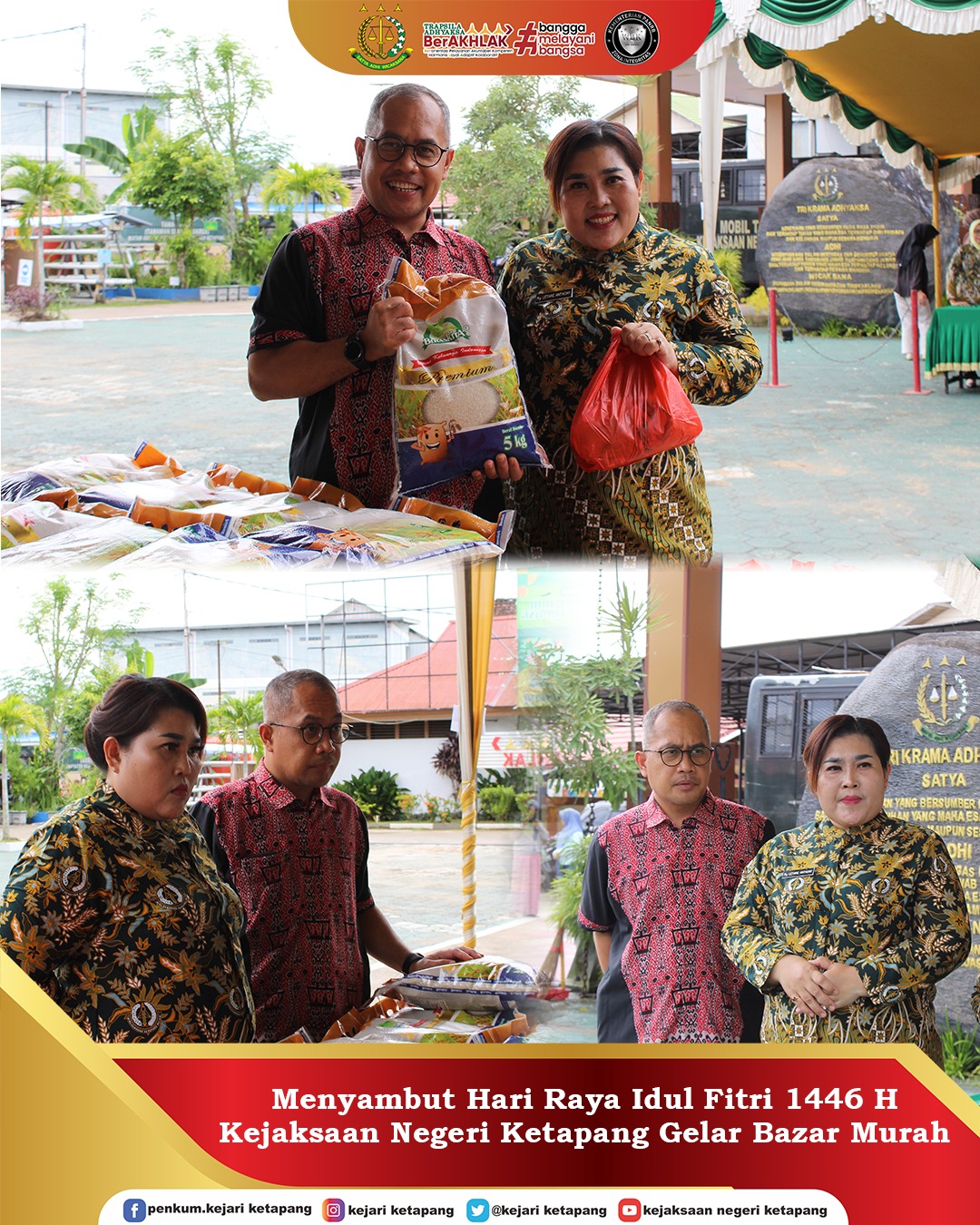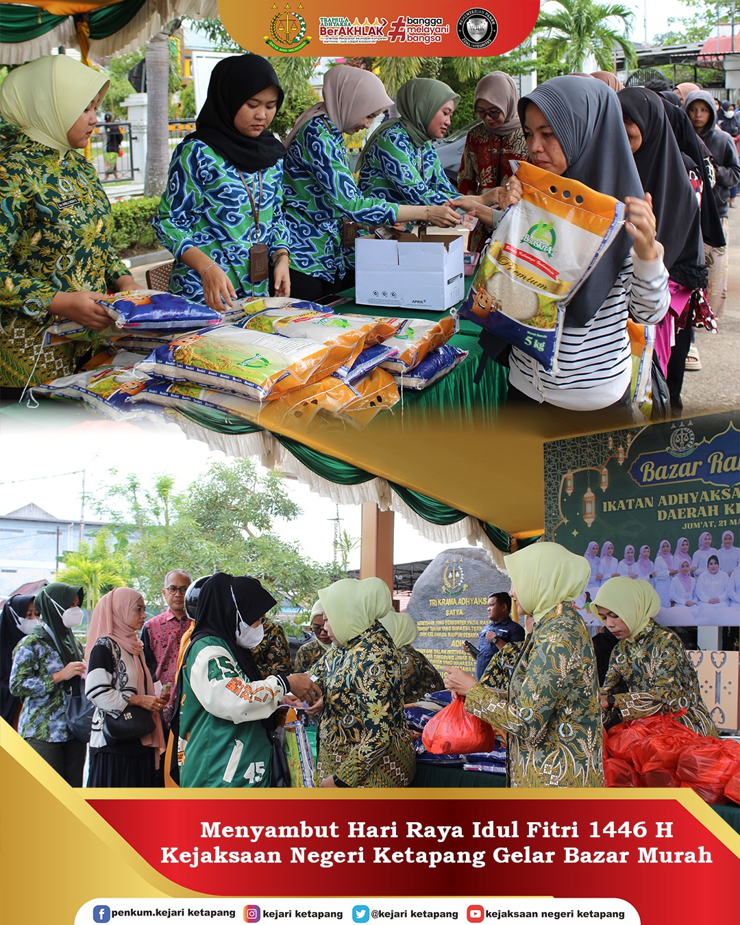 Bertempat di Halaman Kepala Kejaksaan Negeri Ketapang Bapak Anthony Nainggolan, S.H., M.H., dan Pegawai Kejaksaan Negeri Ketapang beserta Ikatan Adhyaksa Dharmakarini (IAD) Daerah Ketapang mengadakan Bazar Ramadhan Sembako Murah Kejaksaan Negeri Ketapang.