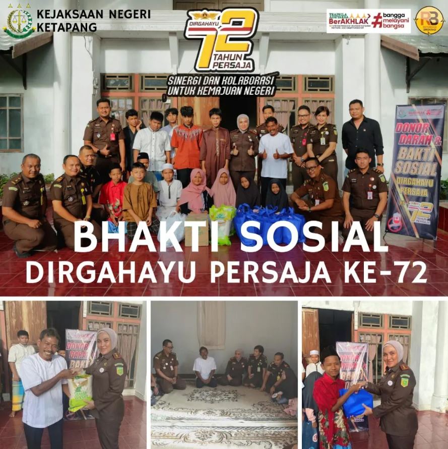 Pada Hari Senin, 08 Mei 2023 Kepala Kejaksaan Negeri Ketapang Ibu RA. Dhini Ardhany, SH., MH. beserta Seluruh Jaksa Kejaksaan Negeri Ketapang melakukan kegiatan Bhakti Sosial yang dilaksanakan di Panti Asuhan Yatama Ketapang Kelurahan Kauman Kecamatan Benua kayong dalam rangka HUT Dirgahayu Ke-72 Tahun Persatuan Jaksa Republik Indonesia (PERSAJA) Tahun 2023.