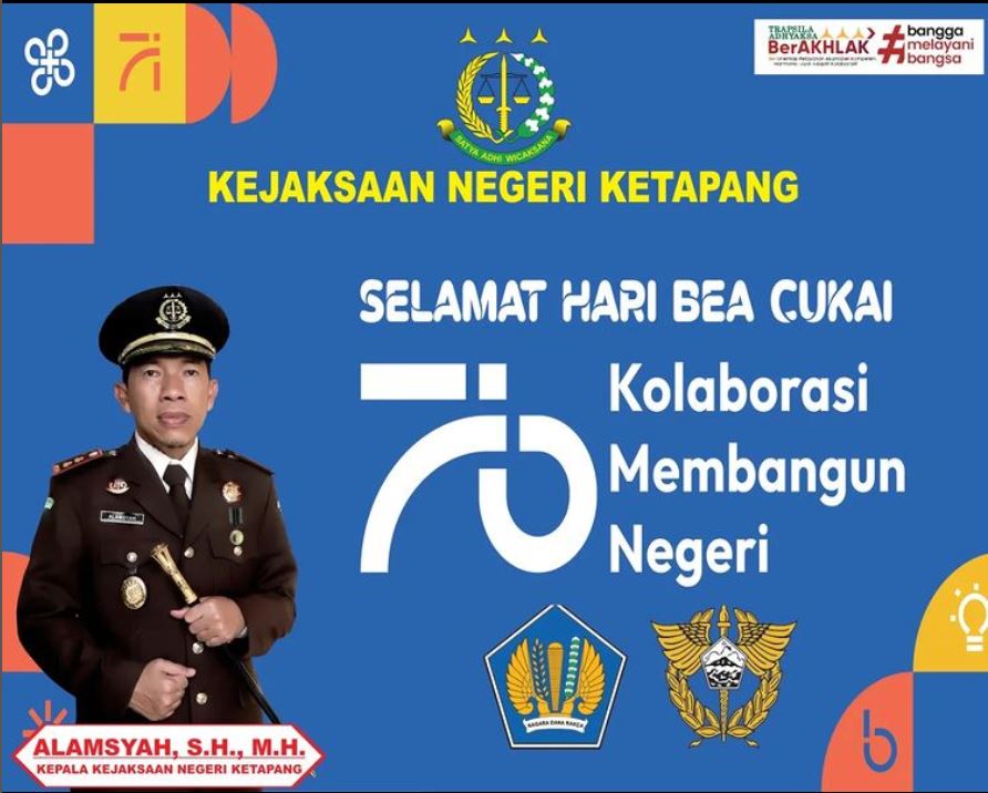 Kepala Kejaksaan Negeri Ketapang Bapak Alamsyah, S.H., M.H. dan seluruh Pegawai Kejaksaan Negeri Ketapang mengucapkan “Selamat Hari Bea Cukai”