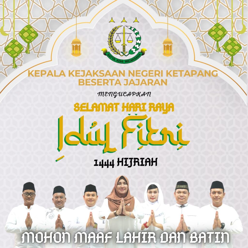Kepala Kejaksaan Negeri Ketapang Ibu RA. Dhini Ardhani, S.H., M.H., beserta Keluarga Besar Kejaksaan Negeri Ketapang mengucapkan Selamat Hari Raya Idul Fitri 1444 Hijriah “Mohon Maaf Lahir dan Batin”