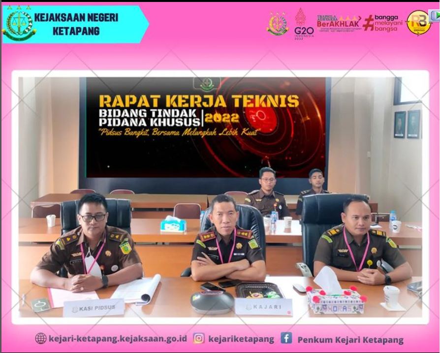 Senin (26/09/2022) bertempat di Aula Vicon Adhi Kepala Kejaksaan Negeri Ketapang Bapak Alamsyah, SH.MH beserta Jajarannya mengikuti secara virtual Rapat Kerja Teknis (Rakernis) Bidang Tindak Pidana Khusus Kejaksaan R.I. dengan tema “Pidsus Bangkit, Bersama Melangkah Lebih Kuat”