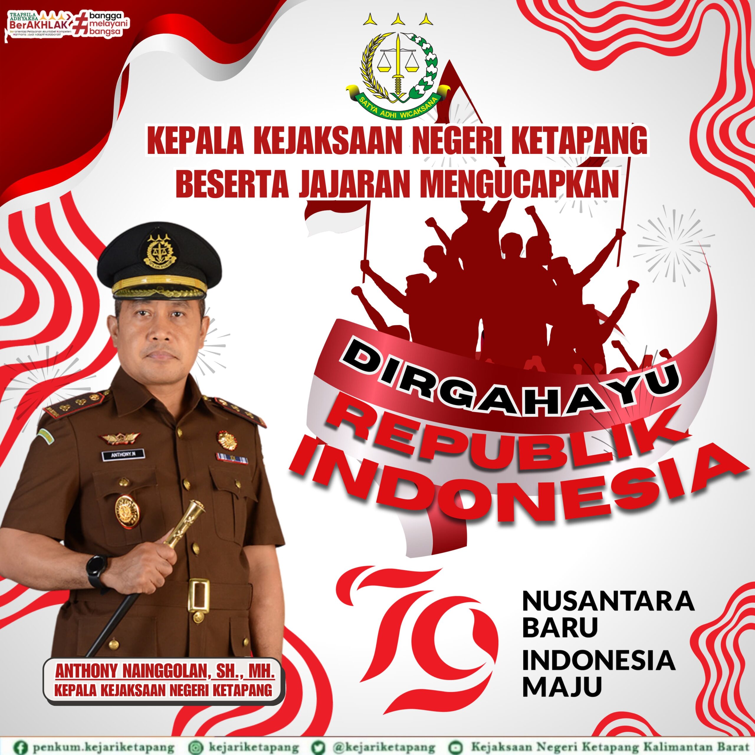 Kepala Kejaksaan Negeri Ketapang Bapak Anthoni Nainggolan, S.H.,M.H., beserta jajaran mengucapkan “Dirgahayu Republik Indonesia ke – 79”