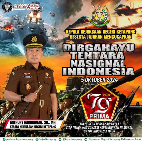 Kepala Kejaksaan Negeri Ketapang Bapak Anthony Nainggolan, S.H., M.H., beserta jajaran mengucapkan Dirgahayu Tentara Nasional Indonesia.