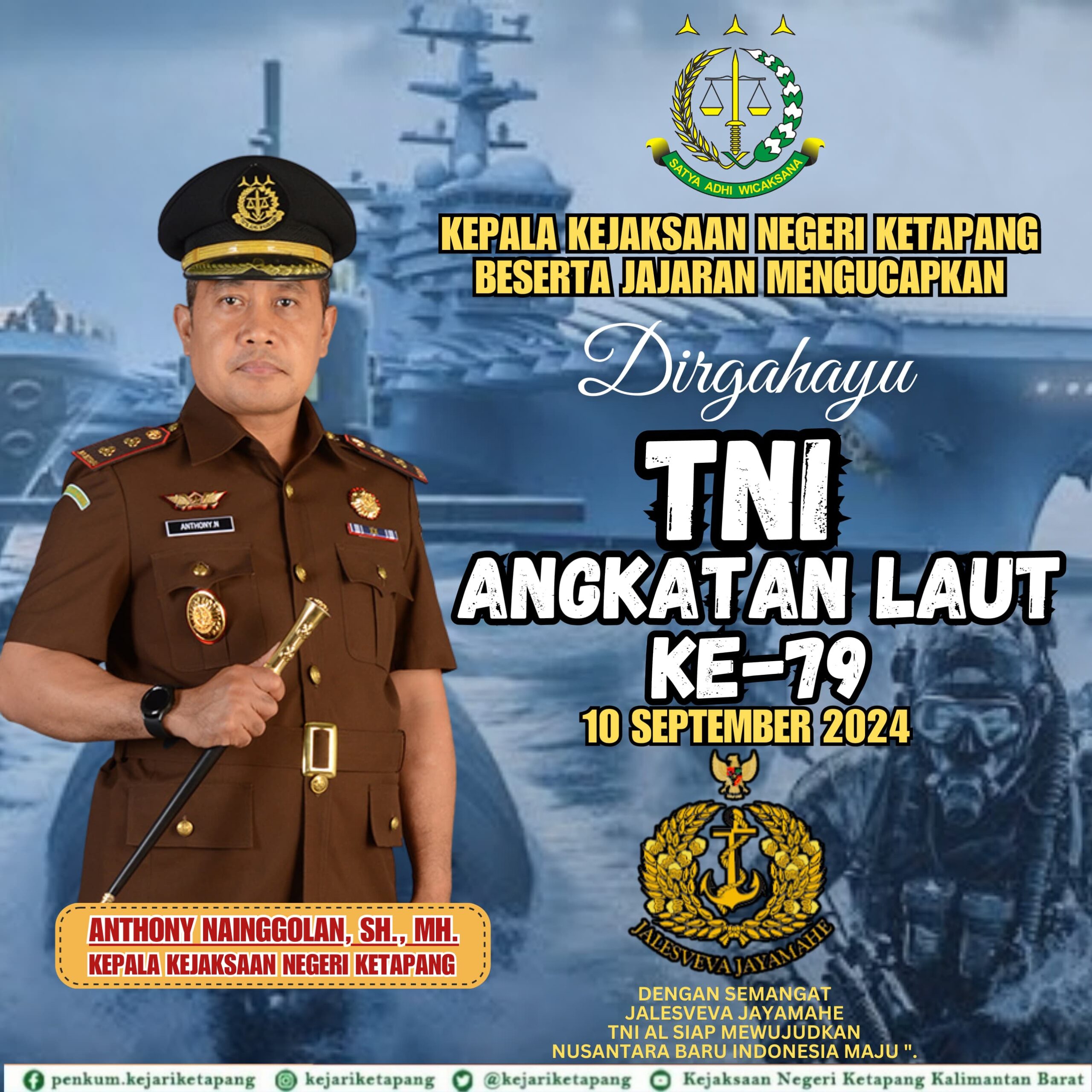 Kepala Kejaksaan Negeri Ketapang Bapak Anthoni Nainggolan, S.H.,M.H., beserta jajaran mengucapkan “Dirgahayu TNI ANGKATAN LAUT Ke-79”