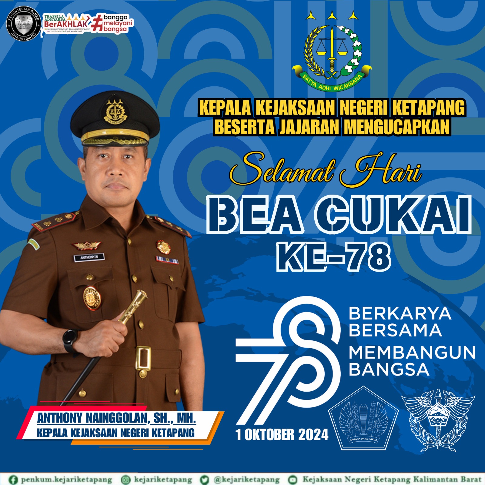 Kepala Kejaksaan Negeri Ketapang Bapak Anthony Nainggolan, S.H.,M.H., beserta jajaran mengucapkan Selamat Hari Bea Cukai Ke- 78.