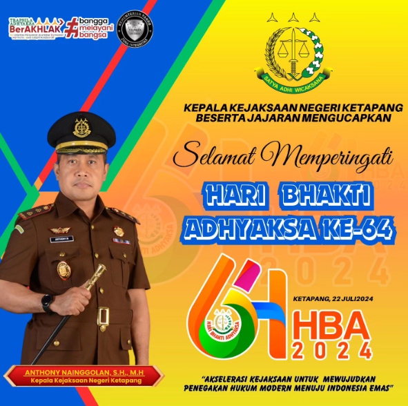 Kepala Kejaksaan Negeri Ketapang Bapak Anthoni Nainggolan, S.H., M.H. beserta jajaran mengucapkan selamat memperingati Hari Bhakti Adhyaksa Ke-64.