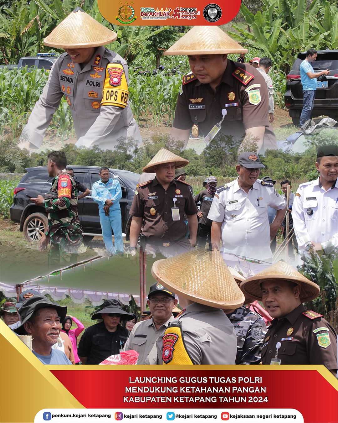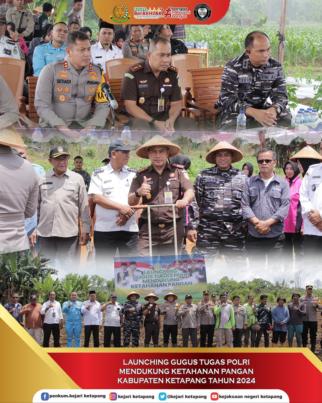 Bertempat di Kebun Kelompok Tani “maju selaras” Dusun Sei Gantang Desa Mekar Utama Kec. Kendawangan, Kepala Kejaksaan Negeri Ketapang menghadiri Kegiatan Launching Gugus tugas Polri mendukung Ketahanan Pangan Kab. Ketapang tahun 2024.