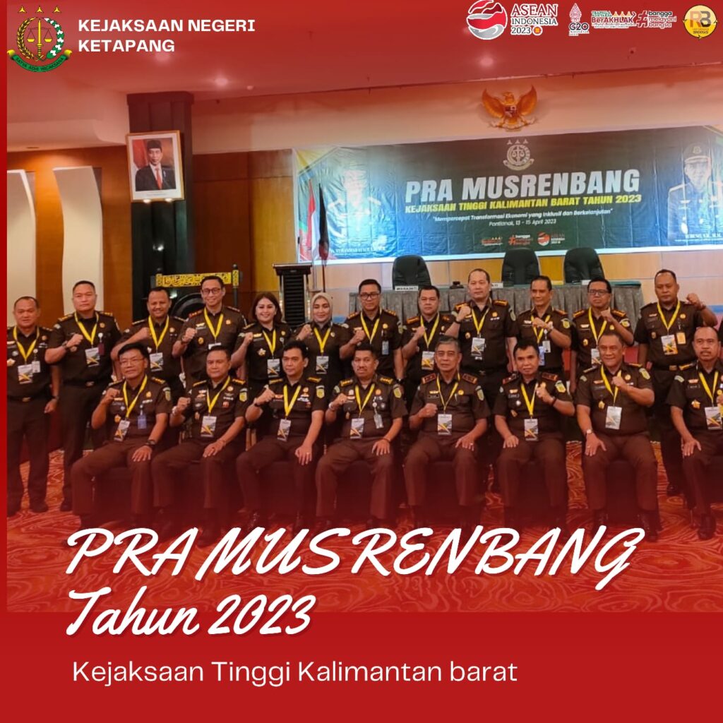 Pada hari Kamis 13 April 2023, Kepala Kejaksaan Negeri Ketapang, RA. Dhini Ardhany, S.H., M.H., Kepala Seksi Tindak Pidana Umum, Kepala Seksi Tindak Pidana Khusus, Dan Kepala Subbagian Pembinaan Mengikuti Kegiatan Pembukaan Pra-Musrenbang Kejaksaan Tinggi Kalimantan Barat Tahun 2023.