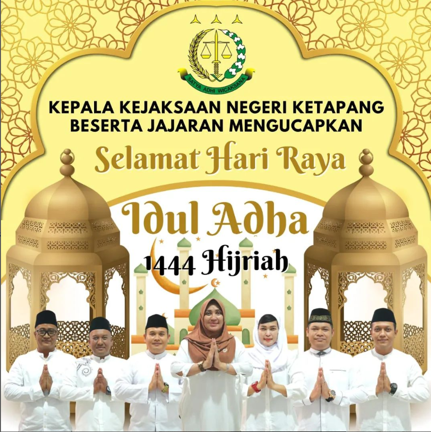 Kepala Kejaksaan Negeri Ketapang Ibu RA. Dhini Ardhani, S.H., M.H. Beserta Jajaran mengucapkan Selamat Hari Raya Idul Adha 1444 Hijriah.