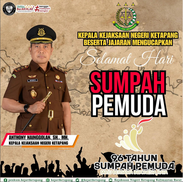 Kepala Kejaksaan Negeri Ketapang Bapak Anthony Nainggolan, S.H., M.H., beserta jajaran mengucapkan Selamat Hari Sumpah Pemuda.