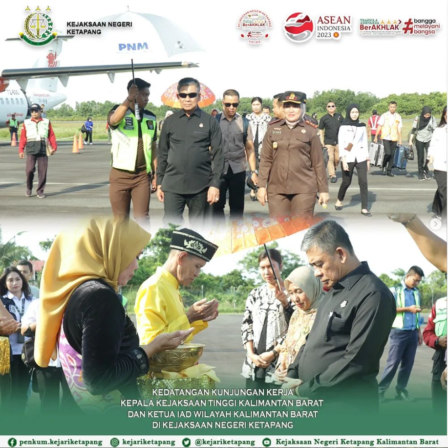 Kepala Kejaksaan Tinggi Kalimantan Barat Bapak Dr. Drs. Muhammad Yusuf, SH, MH dan Ibu Ketua IAD Wilayah Kalbar Ny. Jamilah Yusuf bersama Para Koordinator, Kabag TU Kejati Kalbar dan Ibu-Ibu IAD Wilayah Kalimantan Barat disambut di Bandara Rahadi Oesman Ketapang oleh Kepala Kejaksaan Negeri Ketapang Ibu RA. Dhini Ardhany, S.H., M.H. Beserta Forkopimda Kabupaten Ketapang dan Forkopimda Kabupaten Kayong Utara, dalam rangka Kunjungan Kerja di Kejaksaan Negeri Ketapang.