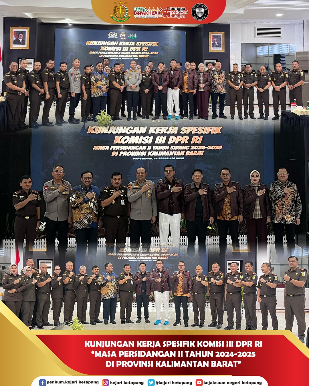 Kegiatan tersebut juga dihadiri oleh Kepala Kejaksaan Tinggi Kalimantan Barat Bapak Edyward Kaban, S.H., M.H. dan Wakil Kepala Kejaksaan Tinggi Kalimantan Barat Bapak Subeno, S.H., M.M. serta Para Asisten di Kejati Kalbar, Seluruh Kajari Se-Kalbar, Kapolda, Wakapolda, beserta Jajaran.