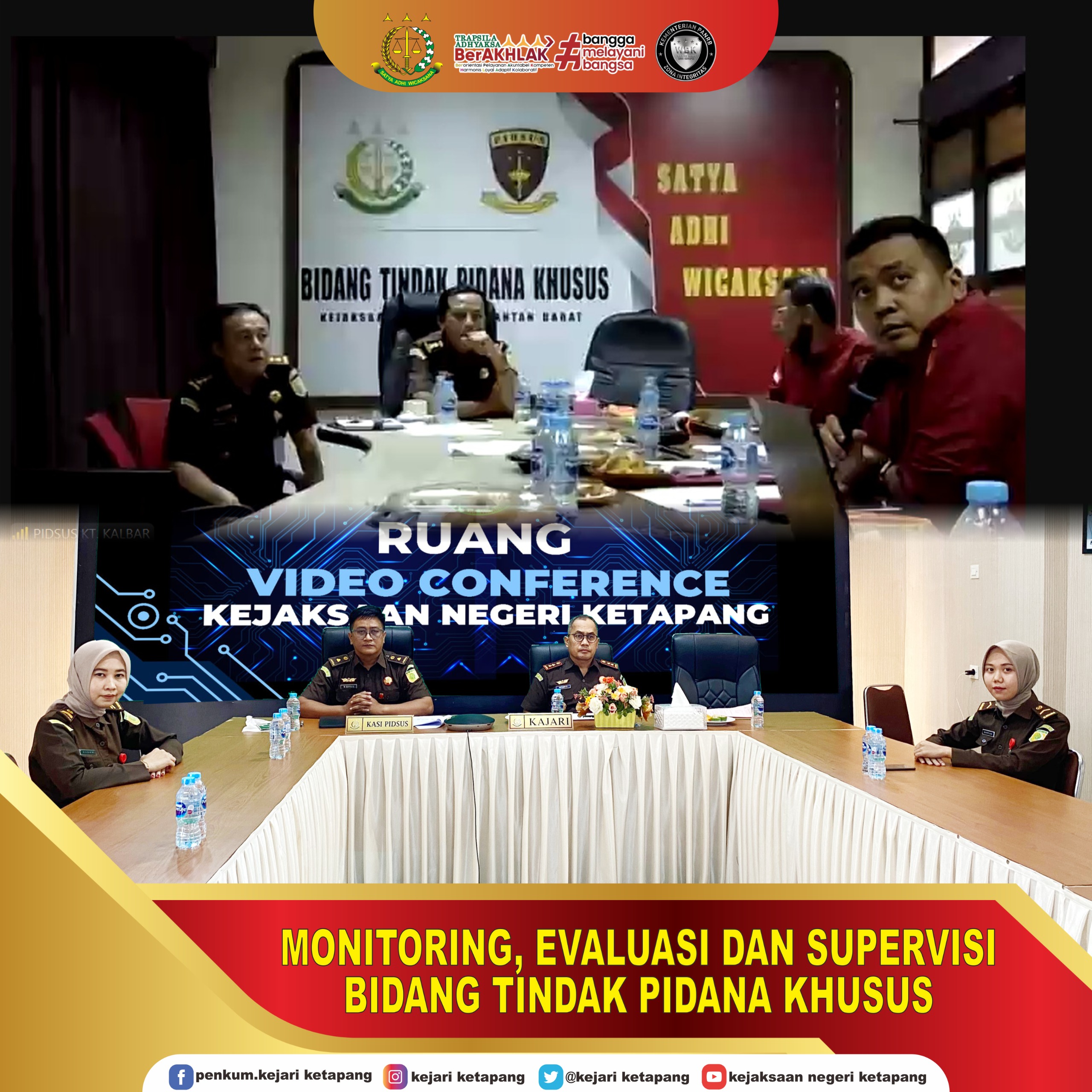 Kepala Kejaksaan Negeri Ketapang Bapak Anthony Nainggolan, S.H., M.H. didamping Kepala Seksi Tindak Pidana Khusus M. Bayu Segara, S.H. beserta Staf mengikuti Monitoring, Evaluasi, dan Supervisi Bidang Tindak Pidana Khusus melalui Video Conference.