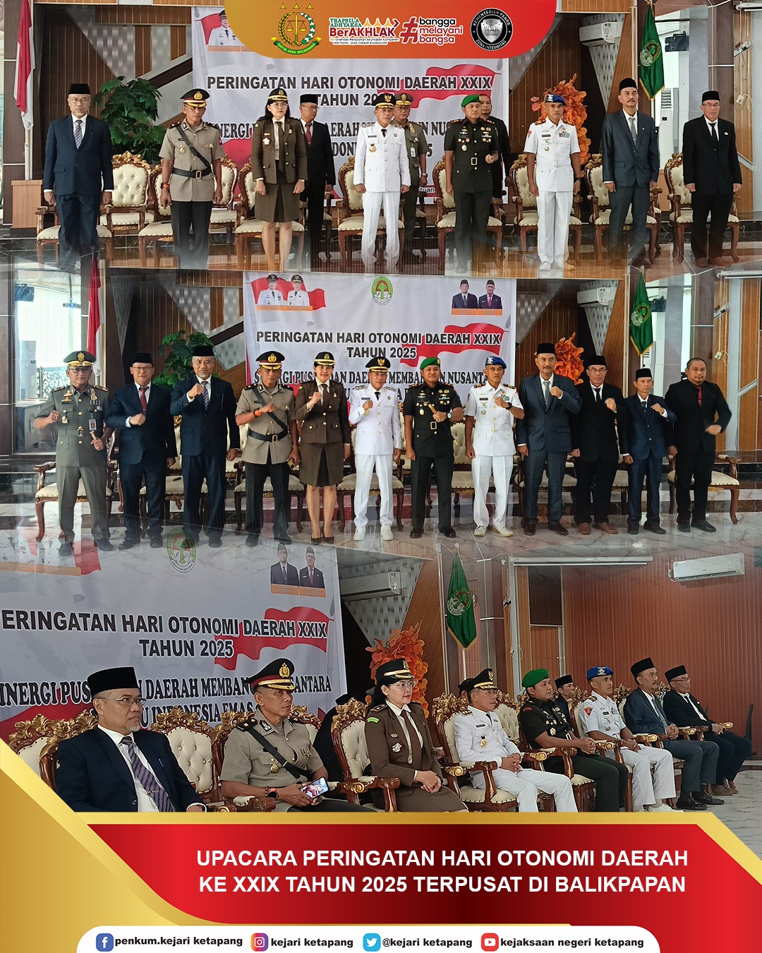 Bertempat di Aula Rapat Kantor Bupati Kabupaten Ketapang, Kepala Kejaksaan Negeri Ketapang diwakili oleh Kepala Pemulihan Aset dan Pengelolaan Barang Bukti, Ibu Wara Endrini, S.T., S.H., M.H menghadiri Upacara Peringatan Hari Otonomi Daerah ke XXIX Tahun 2025 Terpusat di Balikpapan secara Daring.