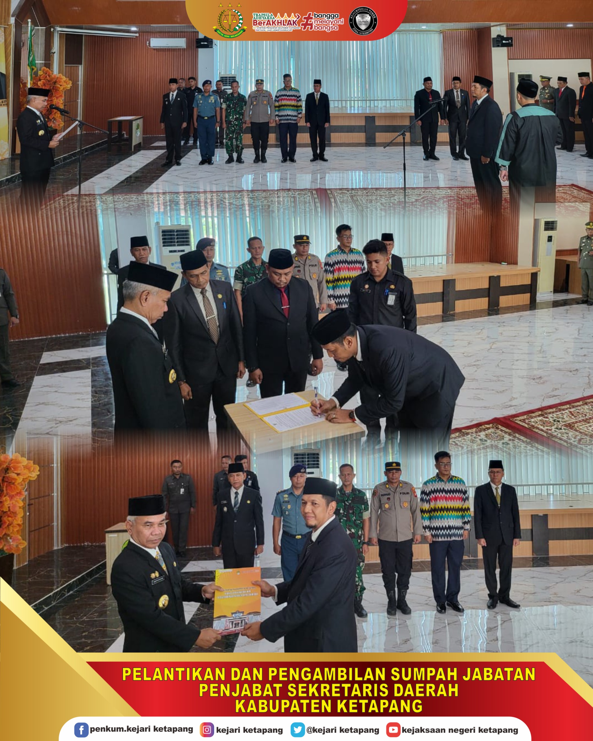 Bertempat di Ruang Rapat Utama Kantor Bupati Ketapang Lt. 3 Kecamatan Delta Pawan Kabupaten Ketapang, Kepala Kejaksaan Negeri Ketapang diwakiki oleh Kepala Seksi Tindak Pidana Khusus Bapak M. Bayu Segara, S.H, menghadiri acara Pelantikan dan Pengambil Sumpah Jabatan Penjabat Sekretaris Daerah Kabupaten Ketapang A.n Bapak Dedy Shopiardi, S.STP yang dilantik langsung oleh Bupati Ketapang Bp. Martin Rantan, S.H.
