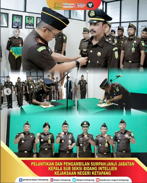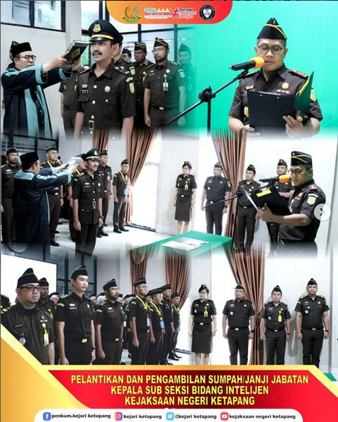 Bertempat di Aula Kejaksaan Negeri Ketapang, telah dilaksanakan Pelantikan dan Pengambilan Sumpah Janji Jabatan Jaksa Fungsional, Rizky Adi Pratama, S.H sebagai Kepala Sub Seksi Ideologi, Politik Pertahanan Keamanan Sosial Budaya dan Kemasyarakatan, Teknologi Informasi, Produksi Intelijen dan Penerangan Hukum Bidang Intelijen Kejaksaan Negeri Ketapang