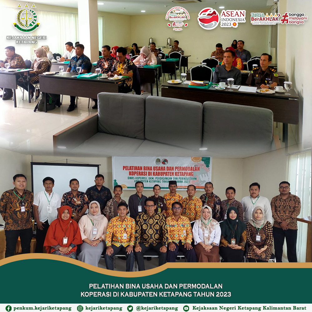 Bertempat di Atlanta Meeting Room Hotel Nevada Ketapang, Jalan R. Suprapto No.116, Kelurahan Sampit, Kecamatan Delta Pawan, Kabupaten Ketapang. Kepala Urusan Kepegawaian Wawan Herawan, dan Pranata Komputer Kam Syarif. Menghadiri kegiatan Pelatihan Bina Usaha dan Permodalan Koperasi Di Kabupaten Ketapang Tahun 2023.