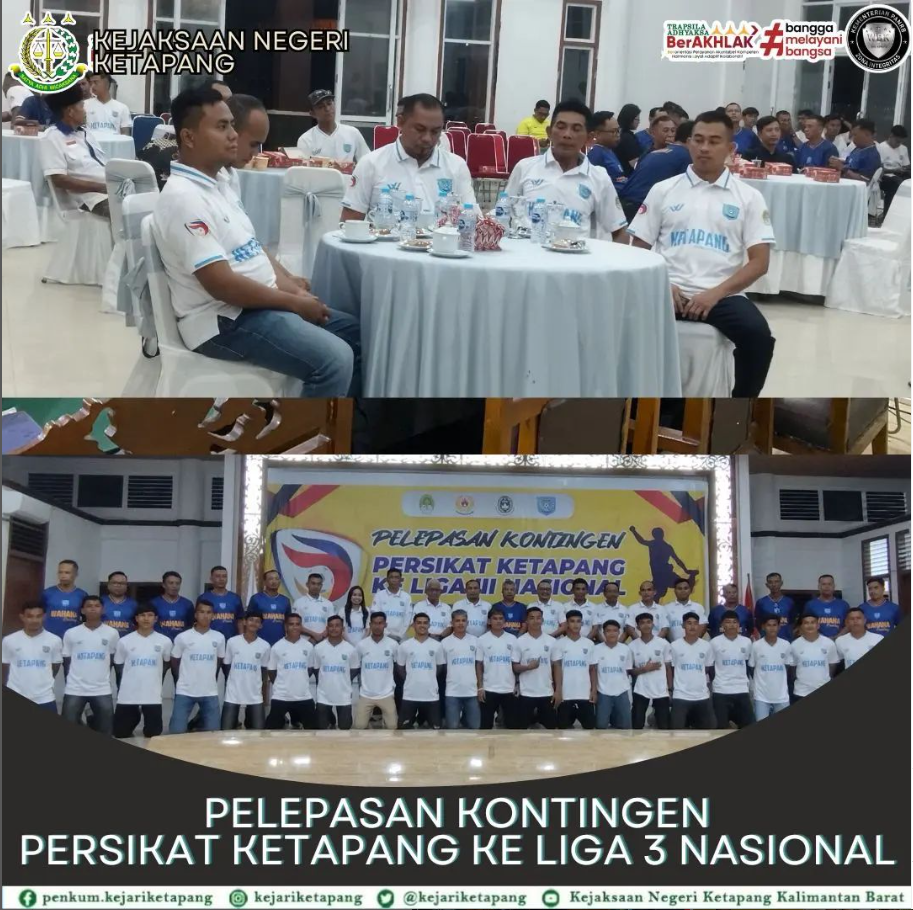 Bertempat di Gedung Pancasila Kabupaten Ketapang, Kepala Kejaksaan Negeri Ketapang diwakili oleh Kepala Subseksi Ekonomi Keuangan dan Pengamanan Proyek Strategis Arief Wirawan Atmaja, S.H., menghadiri Pelepasan Kontingen Tim Sepak Bola PERSIKAT Ketapang ke Liga 3 Nasional.