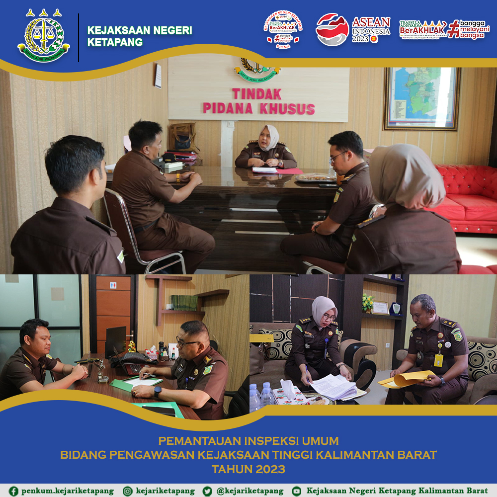 Bahwa Kegiatan inspeksi ini dilakukan terhadap semua Seksi yang ada di Kejaksaan Negeri Ketapang, seperti Seksi Intelijen, Seksi Tindak Pidana Umum, Seksi Tindak Pidana Khusus, Seksi Perdata dan Tata Usaha Negara, Seksi Pembinaan, serta Seksi Pengelolaan Barang Bukti dan Barang Rampasan.