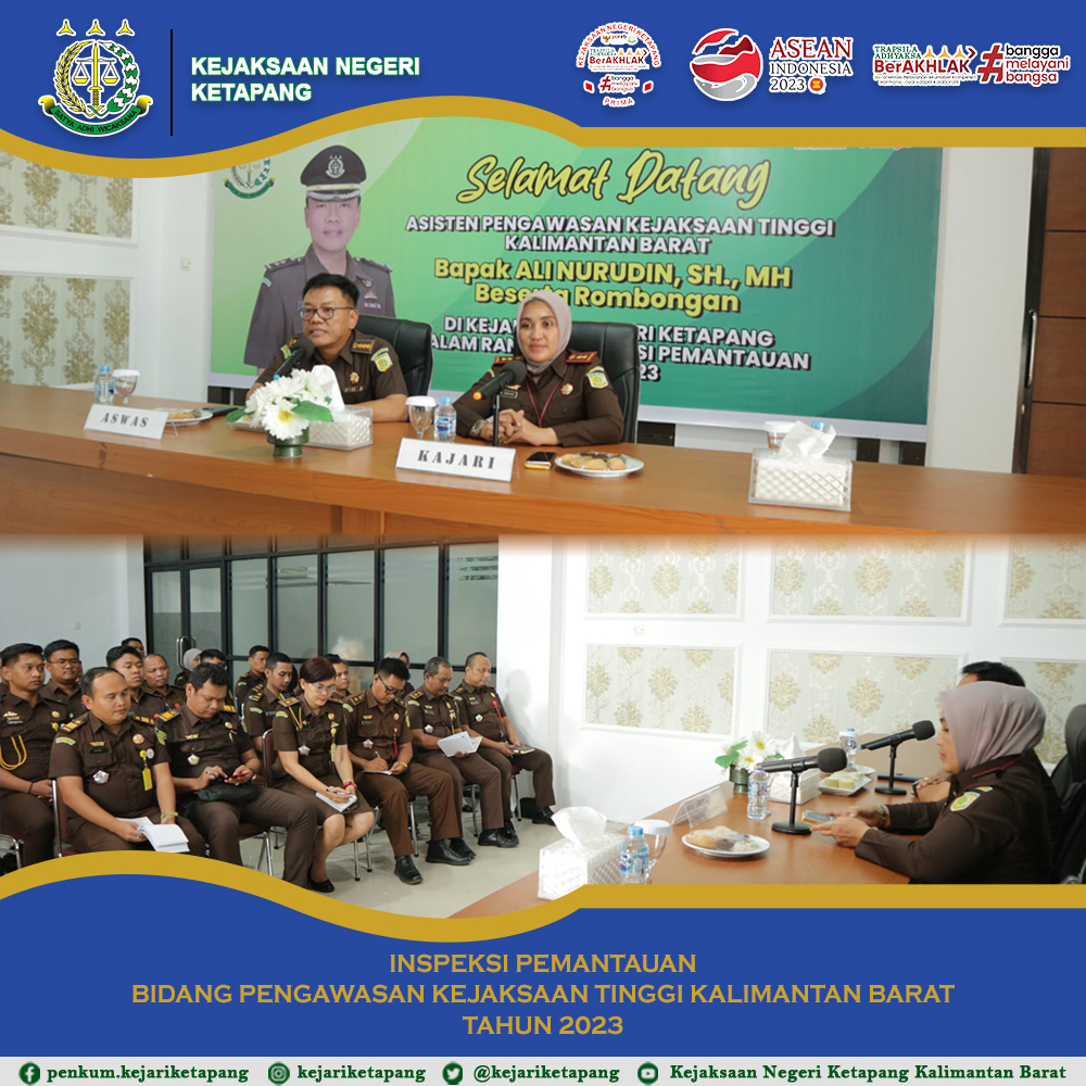 Bahwa Inspeksi Pemantauan yang dilakukan terhadap satuan kerja ini menurut Kepala Kejaksaan Negeri Ketapang Ibu RA. Dhini Ardhany, S.H., M.H., bertujuan untuk melaksanakan kegiatan pengawasan dalam mendukung tercapainya tugas dan Fungsi Kejaksaan Republik Indonesia.