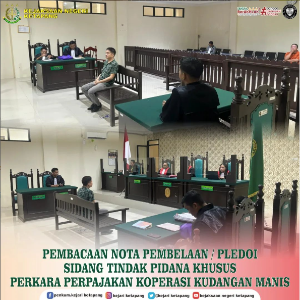 [Rabu, 22 Mei 2024] Bertempat di Ruang Sidang Pengadilan Negeri Ketapang, Jaksa Penuntut Umum pada Kejaksaan Negeri Ketapang Melaksanakan Sidang Perkara Tindak Pidana Perpajakan yang dilakukan oleh FK selaku Ketua Koperasi Kudangan Manis, dengan agenda persidangan Nota Pembelaan / Pledoi.