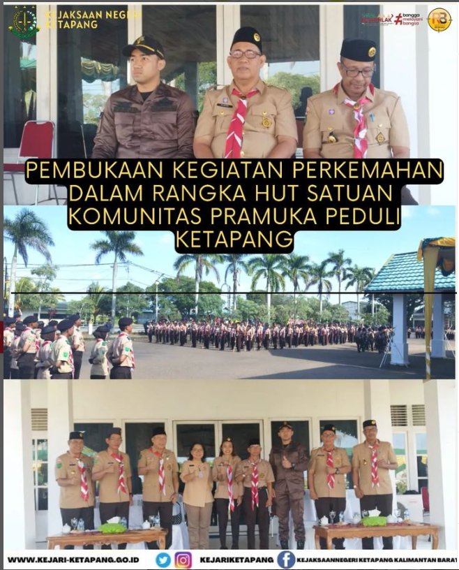 Bertempat di Pendopo Bupati Kabupaten Ketapang. Jalan H. Agus Salim, Kecamatan Delta Pawan, Kabupaten Ketapang. Jaksa Fungsional Kejaksaan Negeri Ketapang Panji Bangun Indriyanto, S.H. Menghadiri Pembukaan Kegiatan Perkemahan dalam rangka HUT Satuan Komunitas Pramuka Peduli Ketapang Ke-13.